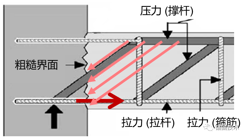 然而,根據(jù)植筋理論,荷載傳遞到混凝土中的方式與鋼筋澆筑方式相同。因此,安裝后的鋼筋一般不設(shè)計(jì)成以與錨栓相同的方式抵抗直接剪切荷載。而是通過拉-壓桿模型定義了鋼筋的受力,該模型假定鋼筋只抵抗軸向荷載,以保證與整體混凝土支柱的平衡。連接界面需要適當(dāng)粗糙,以確保剪切載荷通過摩擦傳遞。